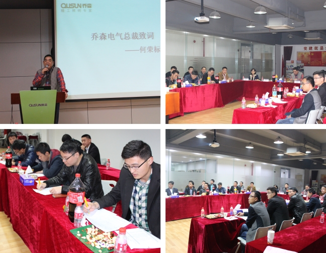 2015年3月3日,喬森照明總裁何榮標(biāo)、營(yíng)銷中心中高層領(lǐng)導(dǎo)以及駐外商務(wù)人員齊聚喬森總部一樓培訓(xùn)室,喬森照明為期5天的新春營(yíng)銷工作會(huì)議正式拉開序幕。